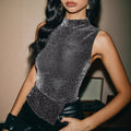 Dam Crop Top – Slim Fit – Ärmellös Hög Hals – Strass Partywear