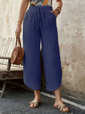 Damer croppad byxa – Hög midja – Vida ben – Bomull linne – Dragsko midja