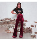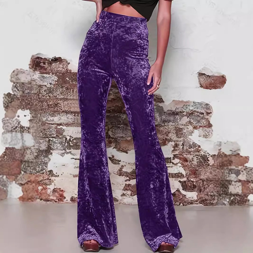 Damer utsvängda byxor – Hög midja – Sammetstyg – Skräddarsydd passform – Full längd