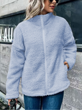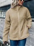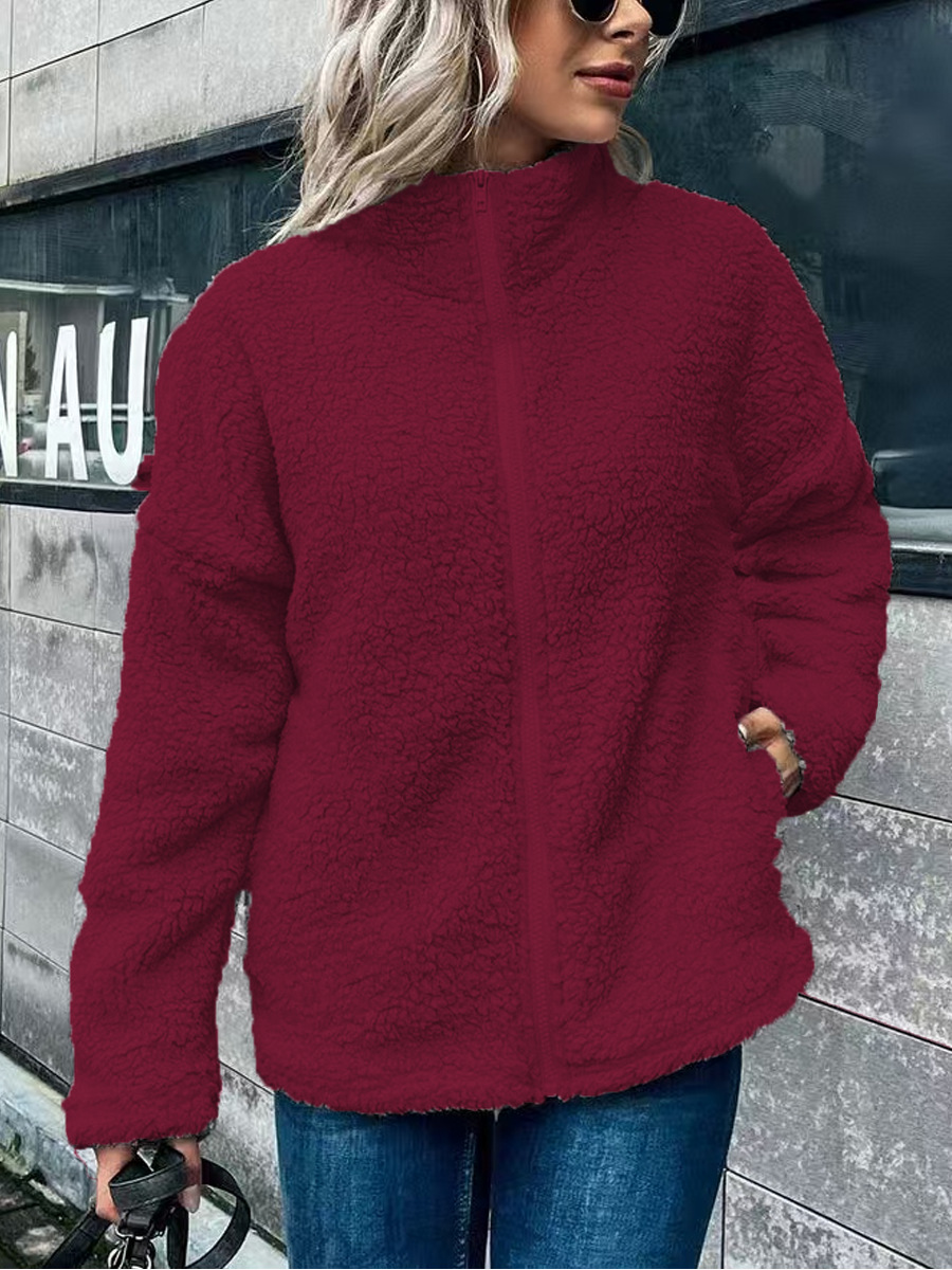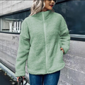Damer Fleece Jacka – Oversized Passform – Ullmix – Långa Ärmar – Stående Krage