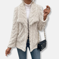 Dam fleece jacka – Avslappnad passform – Schalkrage – Öppen framtill – Höftlång texturerad design