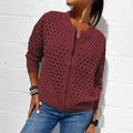 Ontdek het Dames Gebreid Jack Opengewerkt met Ribboorden van Amstel-Mode. Dit comfortabele, relaxed fit vest met stijlvol opengewerkt breisel, ribboorden en ritssluiting is perfect voor elke casual look. Een must-have voor jouw garderobe!