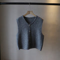 Damer Stickad Väst – Ullmix – Normal Passform – Croppad – Ärmlös Med Knäppning