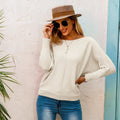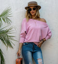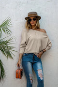- Ontwerp: Off-shoulder, oversized pasvorm, wijde mouwen, geribbelde zoom