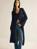 Damer Stickad Sweaterklänning – Slim Passform – V-Ringning – Knäppning – Midi – Lång Ärm