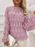 - Ontwerp: Losse pasvorm, Hollow knit patroon, Trompetmouwen, Ronde hals