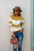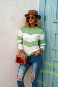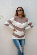 Ontdek de Dames Gebreide Trui Wolmix met Zigzagpatroon, een stijlvolle en comfortabele keuze voor elke vrouw. Deze relaxed fit trui, vervaardigd uit een zachte wolmix, heeft een trendy zigzagpatroon en lange mouwen, perfect voor warmte en een chique casual look.