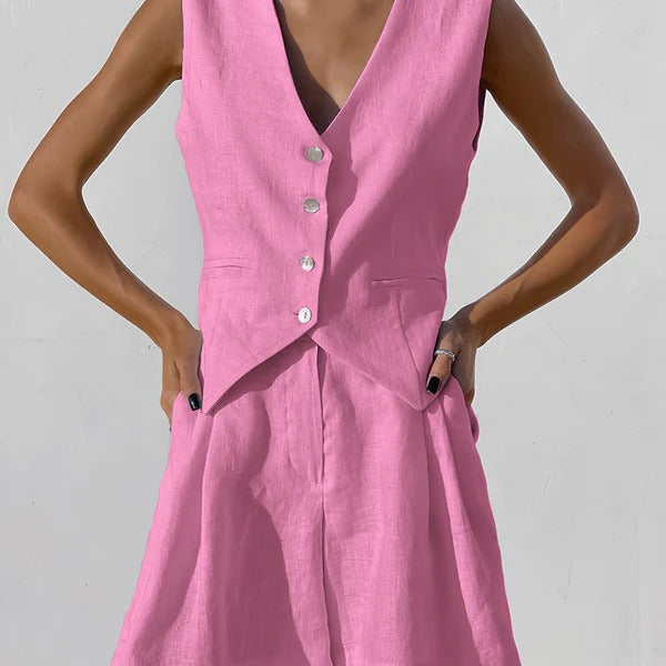 Damer Väst – Linne – Avslappnad Passform – Skräddarsydd V-ringning – Knäppning – Med Fickor