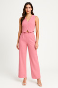 Bär denna stilfulla väst med ett matchande par högmidjade byxor för en komplett, samordnad look, eller kombinera den med en elegant kjol för en mångsidig outfit.