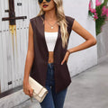 Damer Väst Utan Ärmar – Imitationsläder – Öppen Framsida – Avslappnad Passform