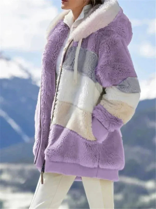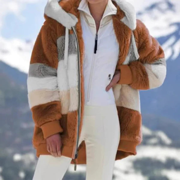 Dam Hoodad Jacka – Oversized Passform – Mjuk Fuskpäls – Dragkedja – Ribbad Fåll