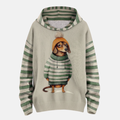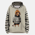 Dam Hoodie – Avslappnad Passform – Fleecekänsla – Tecknat Hundtryck – Randiga Ärmar