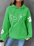 Dam Huvtröja – Avslappnad Passform – Vadderat Tyg – Hund och Tassavtryck Tryck – Känguruficka