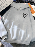 Dam Hoodie – Avslappnad Passform – Bomullsmix – Hjärttryck – Kanguruficka – Ribbstickade Muddar