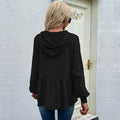 Dam Hoodie – Avslappnad Passform – Volang Detalj – Dragsko Hals – Mjuk Stickad Avslappnadstil