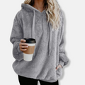 Deze oversized dames hoodie van Sherpa fleece biedt een zachte textuur en een ontspannen pasvorm. Het model is heuplengte en voorzien van lange mouwen.