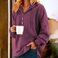 Damer Hoodie Sweatshirt – Fleece – Lös Passform – Knäppning – Långa Ärmar