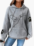 Damer Hoodie – Våffelstruktur – Avslappnad Passform – Hundtryck – Känguruficka – Huva