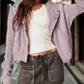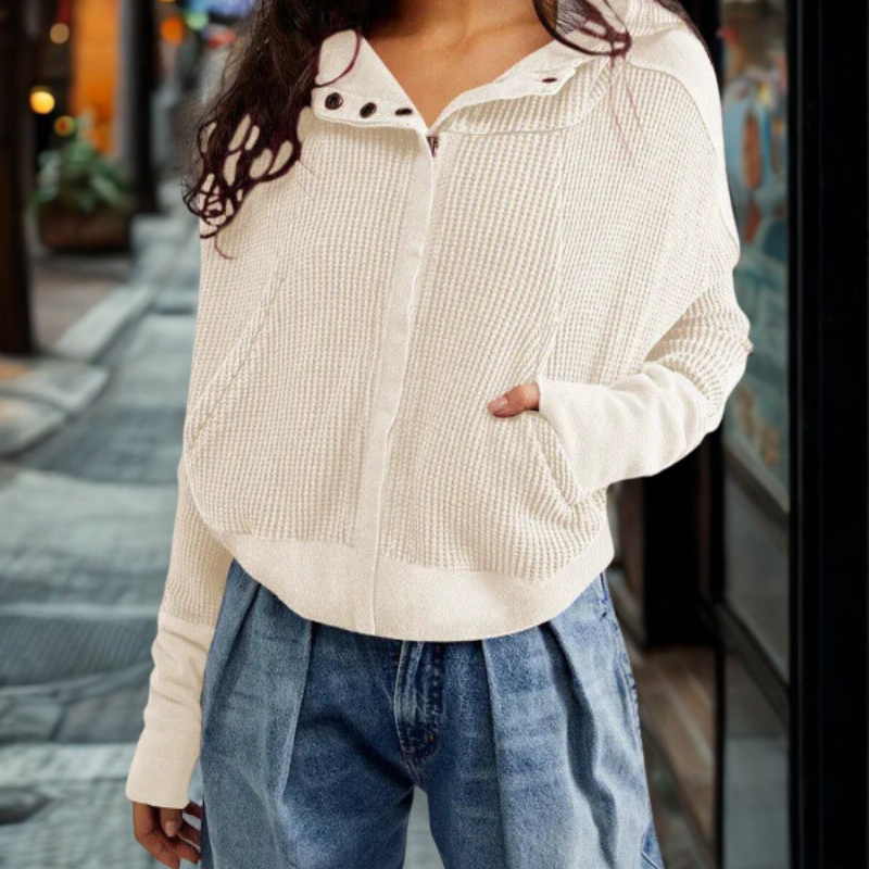 Deze dames hoodie van wafeltricot heeft een cropped lengte en is voorzien van geribde manchetten met duimgaten. Het ontwerp biedt een ontspannen pasvorm voor dagelijks comfort.