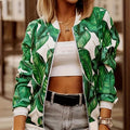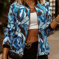 Damjacka – Relaxad Passform – Blommönster – Lättviktig – Dragkedja – Ribbstickade Muddar