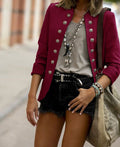 Dam Jacka – Figursydd Modell – Vävt Tyg – Stående Krage – Knäppning