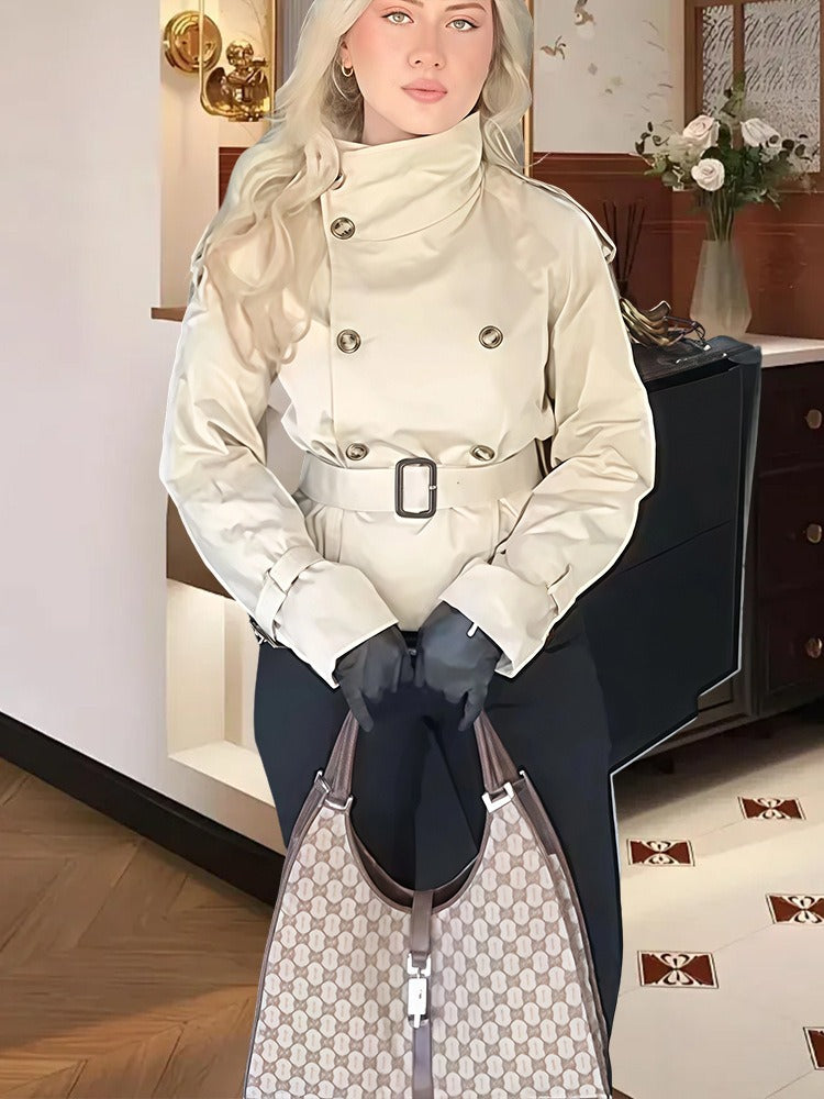 Damkappa – Figursydd Passform – Dubbel Revers – Bälte – Vidgade Ärmar
