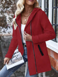 Dam Jacka med Huva – Avslappnad Passform – Fleecefoder – Asymmetrisk Dragkedja