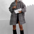 Damkappa – Oversized Passform – Ull – Rutmönster – Knälång – Kragestruktur