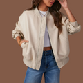 Upptäck vår lättviktsjacka med ribbade muddar och fickor från Amstel-Mode. Denna damjacka med avslappnad passform, praktisk dragkedja och funktionella fickor är det perfekta lättviktstillägget till varje garderob. Idealisk för mångsidig komfort och en enkel, chic utstrålning. Din nya favoritjacka för vardagen.