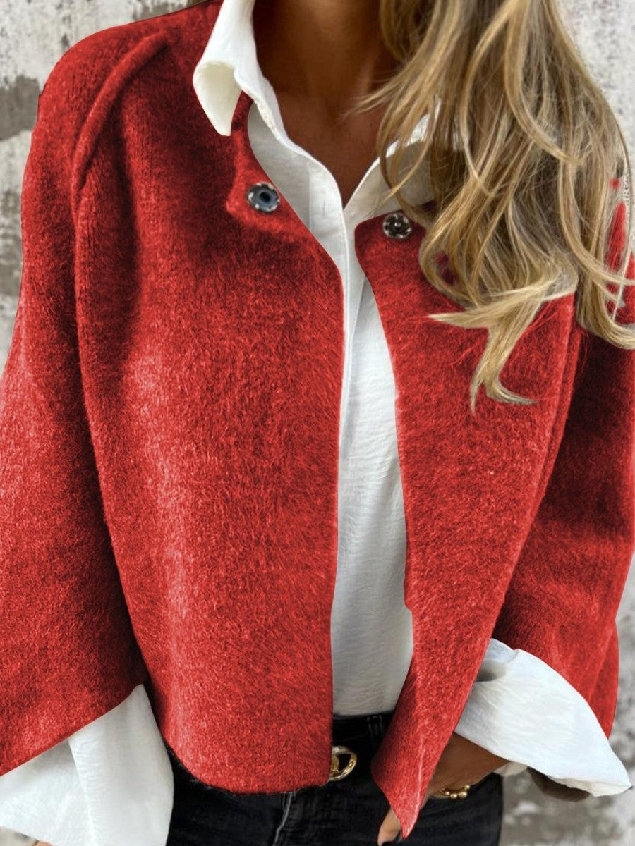 Dam Kappa – Relaxed Passform – Mjuk Ulllook – Rund Hals – Långa Ärmar – Knapprad