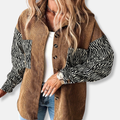 Dam Kappa - Ribbad Sammet - Oversized Passform - Halvlång - Zebraprint Detaljer