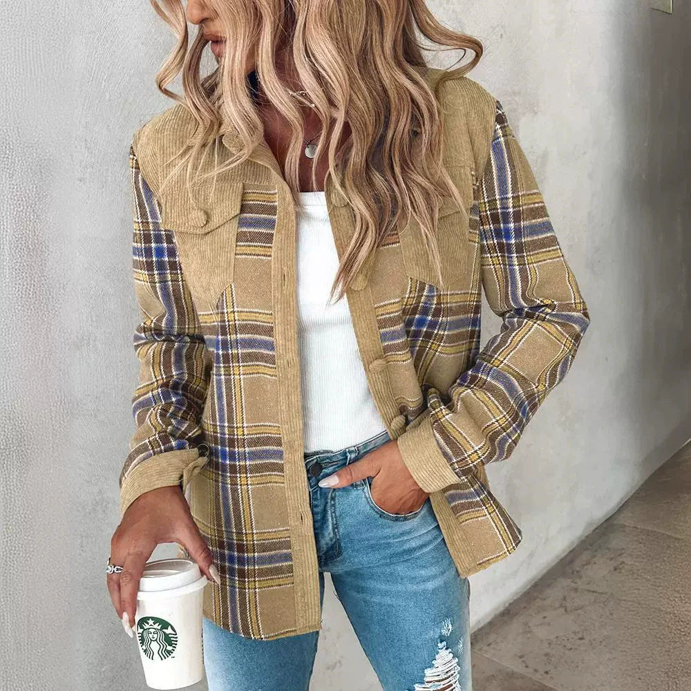 Deze dames jas, uitgevoerd in ribfluweel met een oversized pasvorm en halflange snit, is voorzien van zebraprint details.