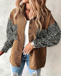 Oversized Ribfluwelen Halflange Zebraprint Jas