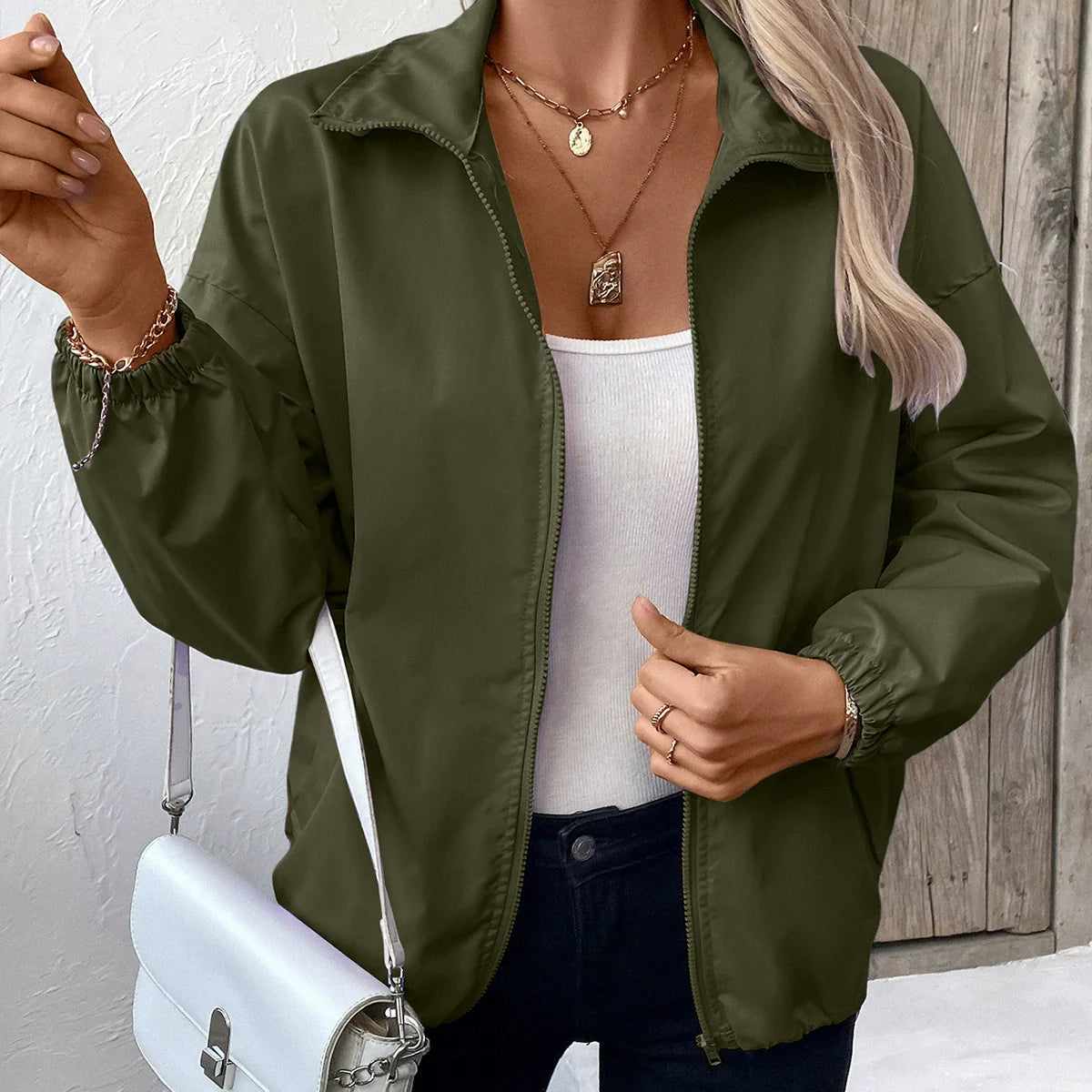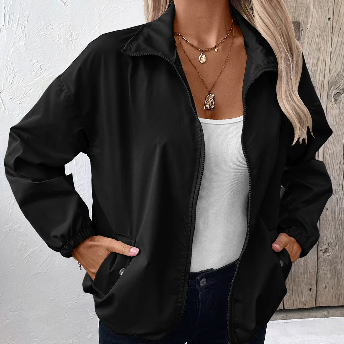 Damjacka – Vattentät – Avslappnad Passform – Höftlängd – Dragkedja – Elastiska Muddar
