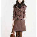 - Ontwerp: Getailleerde, dubbelrijige pasvorm met een zelfbindende ceintuur.