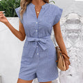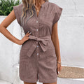- Design: Casual passform med fina ränder, knappstängning framtill, midjeband, korta ärmar och funktionella fickor.