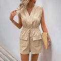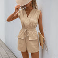 Dam Jumpshort – V-ringning – Lös Passform – Midjesnöre – Ärmellös Casual Modell