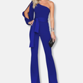 - Design: Elegant one-shoulder med figursydd passform och vida utsvängda ben
