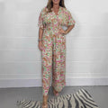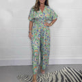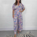 Dam Jumpsuit – Avslappnad Passform – Vida Ben – V-ringning – Korta Ärmar – Boho Mönster