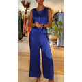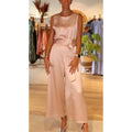 Dam Jumpsuit – Satinlook – Avslappnad Passform – Ärmlös – Vida Ben – Draperad Hals