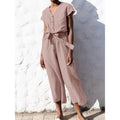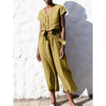 Dam Jumpsuit – V-ringning – Bomullsmix – Avslappnad Passform – Kort Ärm – Cropped Byxben
