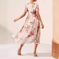 Dam Klänning – Blommönster – V-ringning – Volangärmar – High-Low Fåll – Rosettbälte