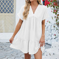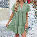 Damklänning – Utsvängd Modell – V-Hals – Korta Ärmar – Luftigt Tyg – A-Linje