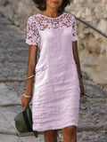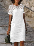 Damklänning – Lös Modell – Knälång – Kort Ärm – Spetsdetalj – Andningsbart Material