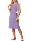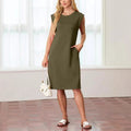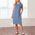 Damklänning – Ärmlös – Avslappnad Passform – Mellanlång – Rund Hals – Med Sidoslits och Fickor