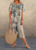 Damklänning – Avslappnad Passform – Abstrakt Tryck – Bomullsmix – Midi Längd – Kort Ärm