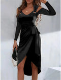 Damklänning – Slim Fit – V-Ringning – Midjeskärp – Axel Cut-Out – Asymmetrisk Fåll
