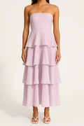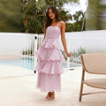 Damklänning Axelbandslös – Figursydd Överdel – Midi Längd – Flerlagda Volanger