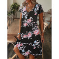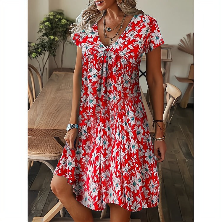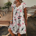 Damklänning – V-Ringning A-Linje – Bomullsmix – Löstsittande – Knälång Casual Modell