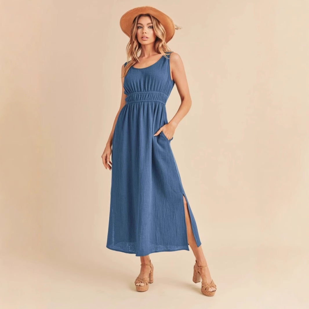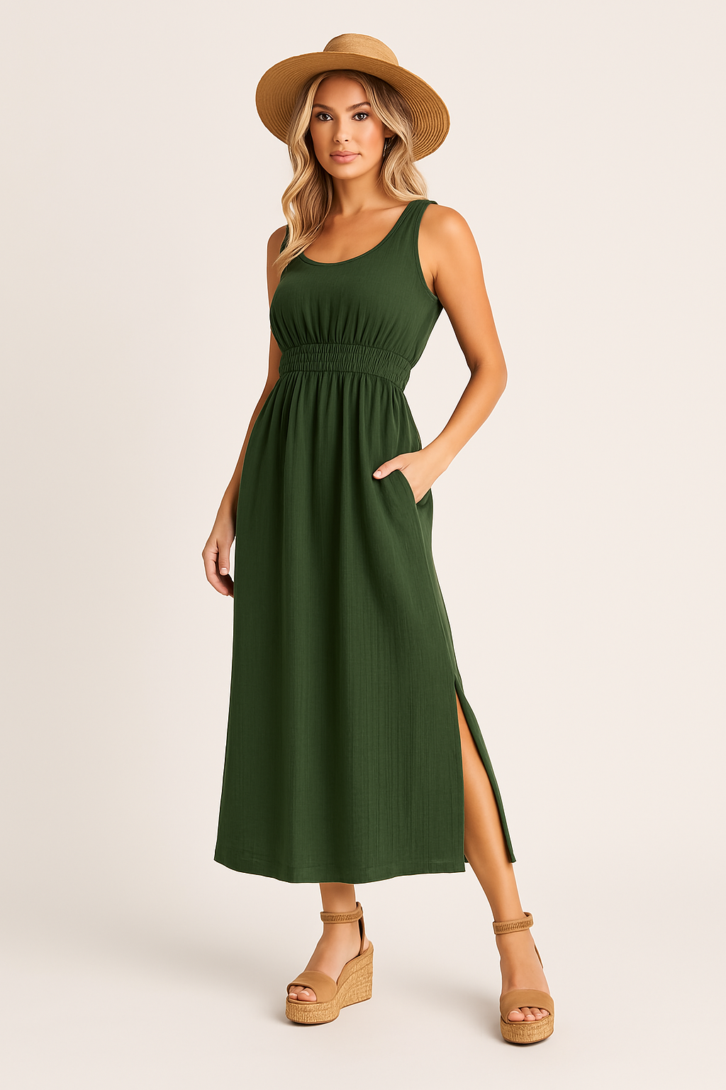 Damklänning Ärmlös – A-linje – Midi Längd – Luftig Avslappnad Passform